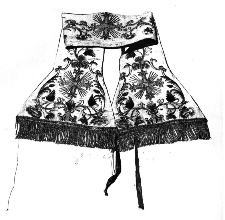 Il manipolo è ricamato e reca decorazioni vegetali con foglie, fiori, racemi