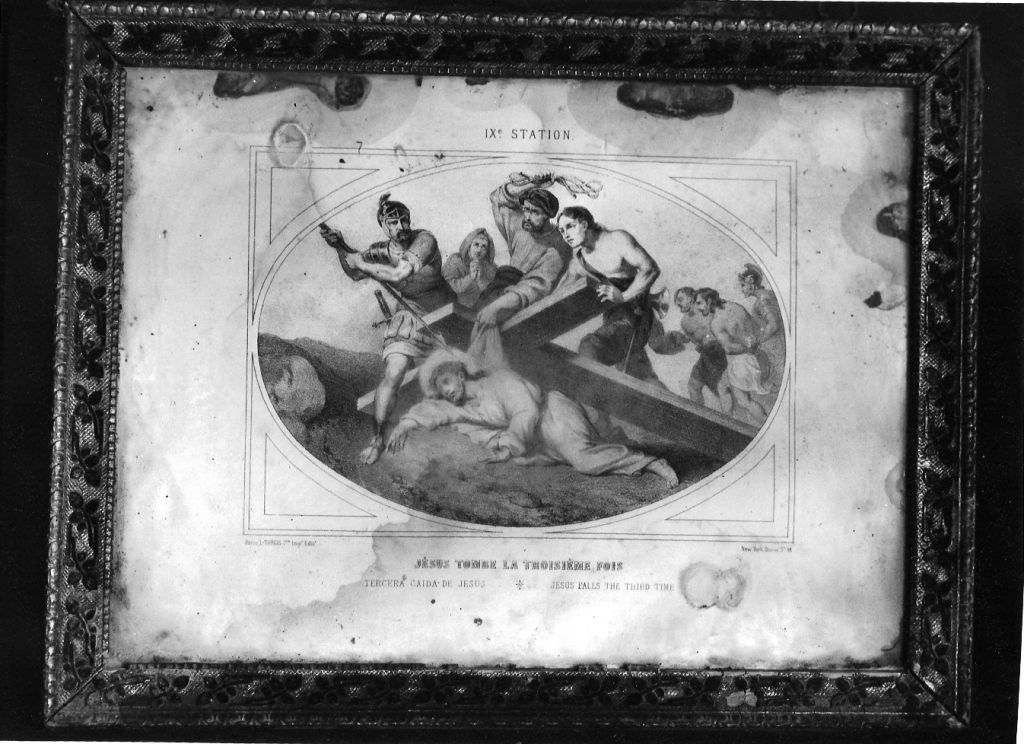 Personaggi: Cristo. Figure: soldati. Figure maschili. Strumenti del martirio: croce; corde. Armi: lancia