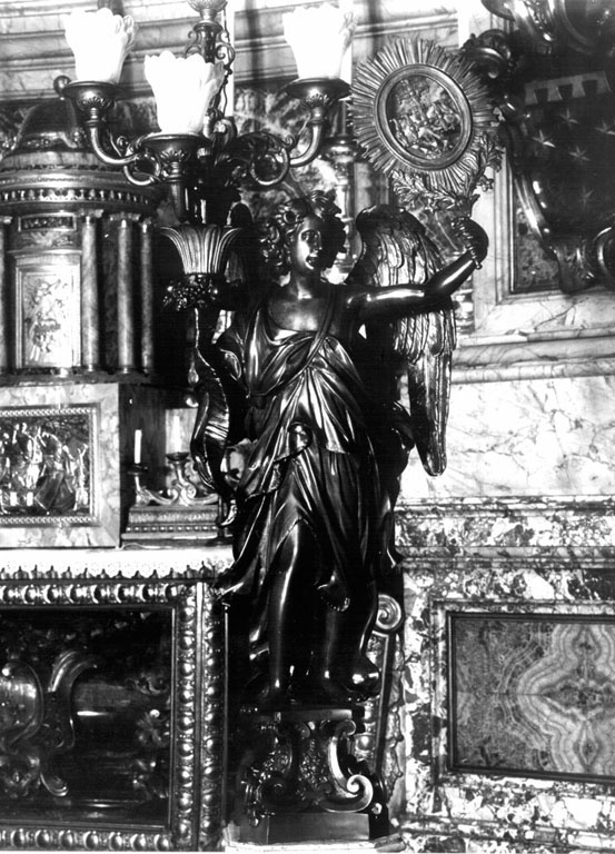 Figure: angelo. Oggetti: insegna della Compagnia di Gesu'; cornucopia; candelabro