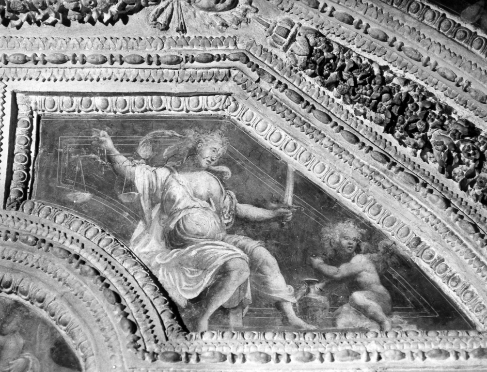 Personificazioni: Giustizia. Attributi: (Giustizia) bilancia; spada. Figure: putto. Oggetti: vaso