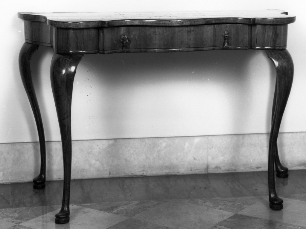 Gamba incurvata priva di decorazione. Fascia modanata con cassetto centrale