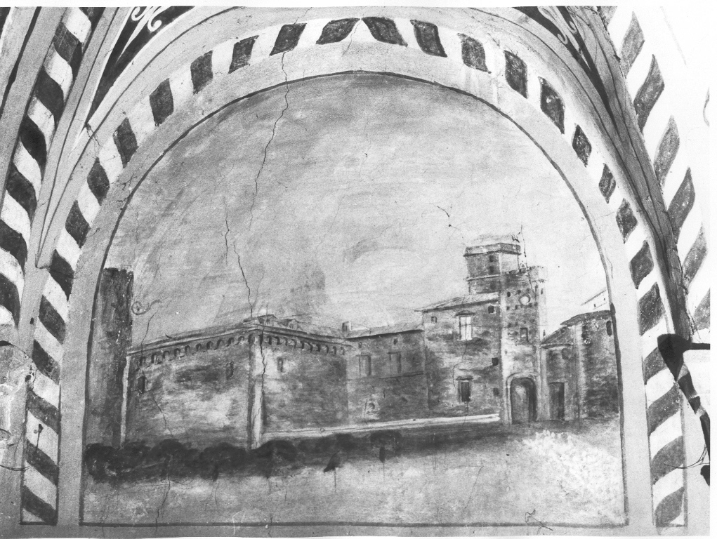 Decorazione murale che interessa lunetta con veduta del castello Orsini
