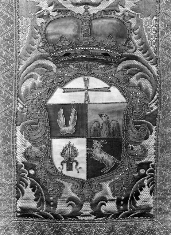 bordato da gallone tessuto in oro con motivo geometrico. In basso al centro è lo stemma della famiglia Londei Grazioli