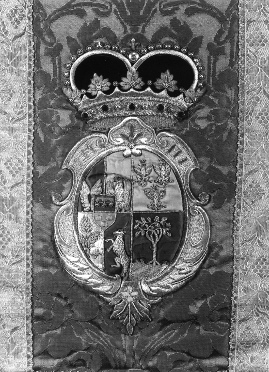 bordato da gallone tessuto in oro con motivi di foglie di vite, spighe e uva. In basso al centro è lo stemma della famiglia Londei Grazioli