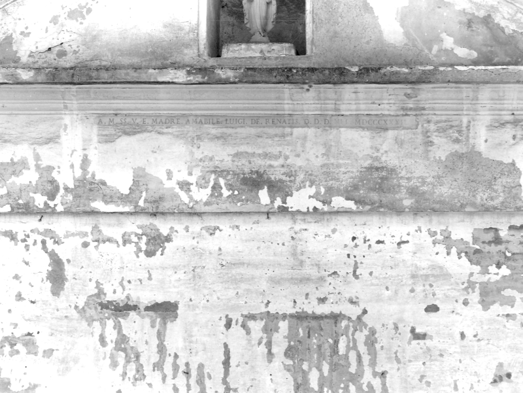 Lapide commemorativa formata da una striscia di marmo senza incorniciatura, inserita nell'intonaco