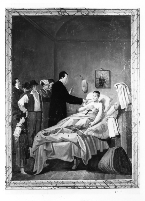 Soggetti sacri. Personaggi: parroco di Roiate. Figure: infermo. Interno