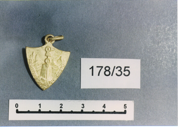 D/ ALTARE E STENDARDO CON AQUILA, SULLO SFONDO SPADE NELLE ROCCE; R/ STEMMA CON SPADA