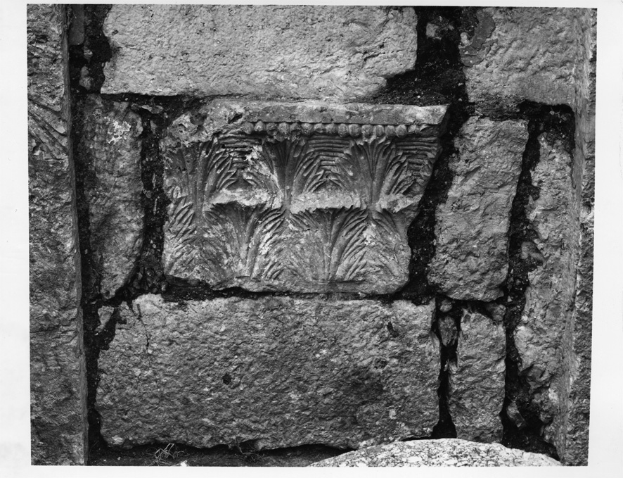 Frammento di lastra scolpita a bassorilievo con doppia fila di foglie di acanto stilizzate, conclusa da fila di ovuli