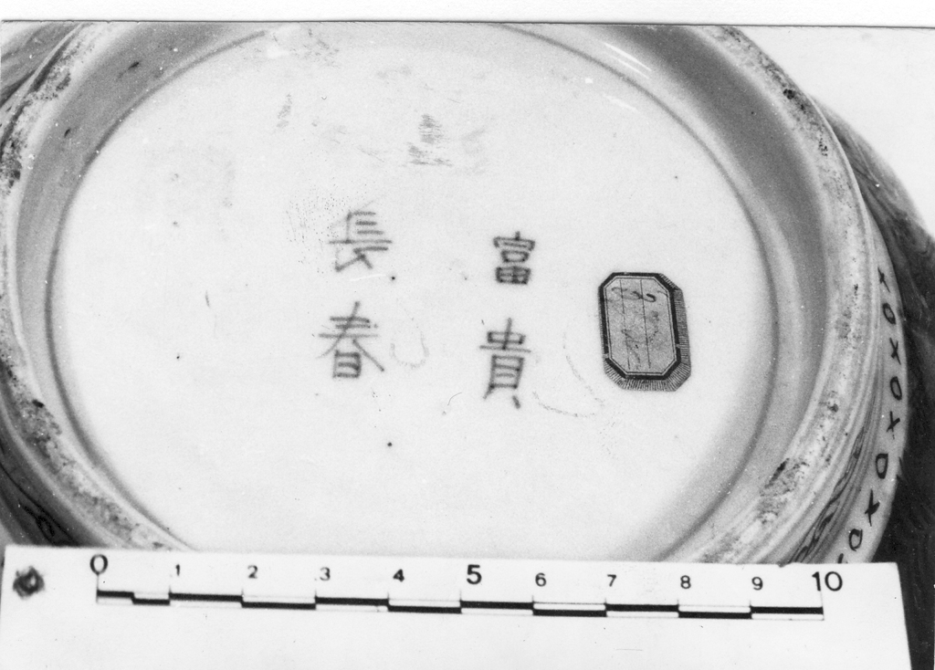 - ISCRIZIONI sotto la base - RICCHEZZE ONORI E DUREVOLE PRIMAVERA (FU GUI CHANCI CHUN) - ideogrammi - a pennello -