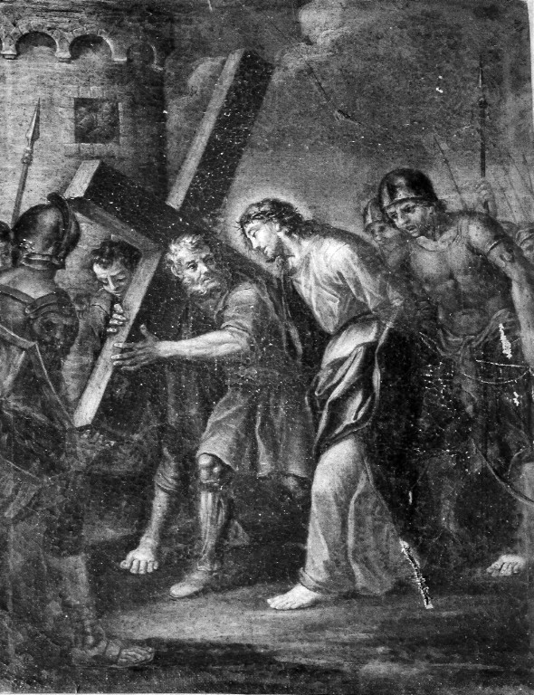 Personaggi: Cristo; Simone Cireneo. Figure maschili: soldati