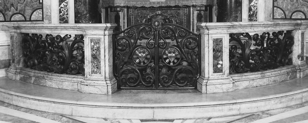 Semicircolare posta su di un gradino marmoreo è caratterizzata da quattro pile e da una cimasa in marmo che incorniciano l'esuberante disegno a racemi realizzato invece in bronzo. Al centro l'accesso all'altare è consentito da un cancelletto con la rappresentazione del Sacro Cuore sia al centro che alla sommità