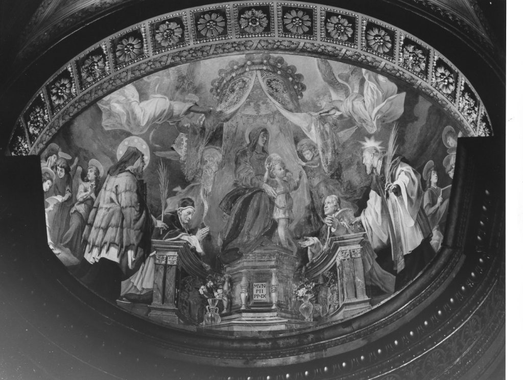 Personaggi: Madonna; Gesù Bambino; S. Giovanni Nepomuceno; S. Giovanni Sarkander; Pio IX; Benedetto XIII. Figure: angeli