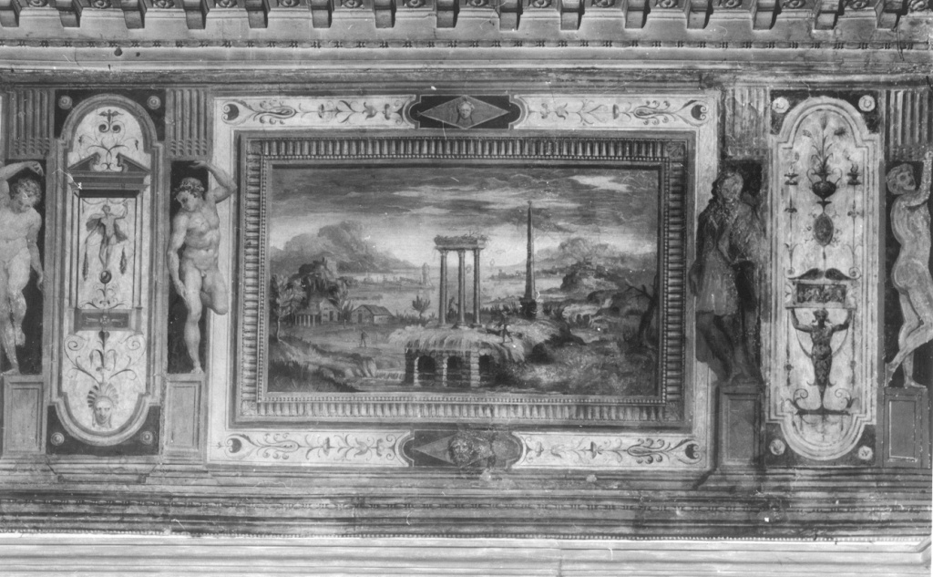 architetture: architetture classiche. Costruzioni: case. elementi architettonici: obelisco; rovine. figure: figure maschili