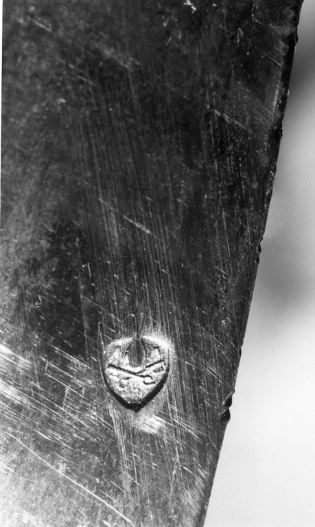 base circolare su piedini a zampa leonina; fusto a balaustro con nodo a vaso decorato da testine angeliche; ricettacolo raggiato con raggi lanceolati sui quali sono applicate testine angeliche e fascio ci spighe; crocetta raggiata apicale