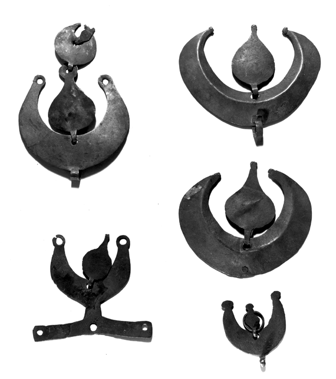 elemento decorativo di bardatura a forma di mezzaluna, con pendaglio al centro