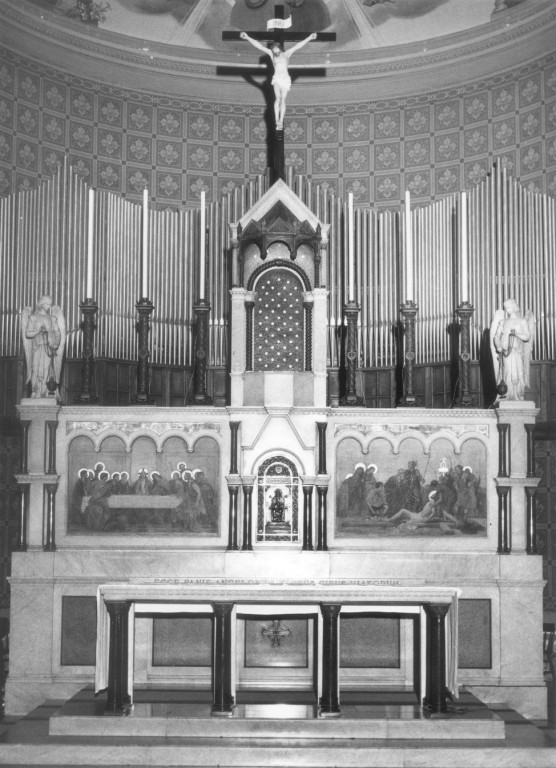 - NOTIZIE STORICO CRITICHE L' altare, riconducibile stilisticamente all'arte eclettica romana, è databile al 1910, anno che figura sulle due tele dipinte di Silvio Galimberti e applicate sulla parete frontale del gradino d'altare
