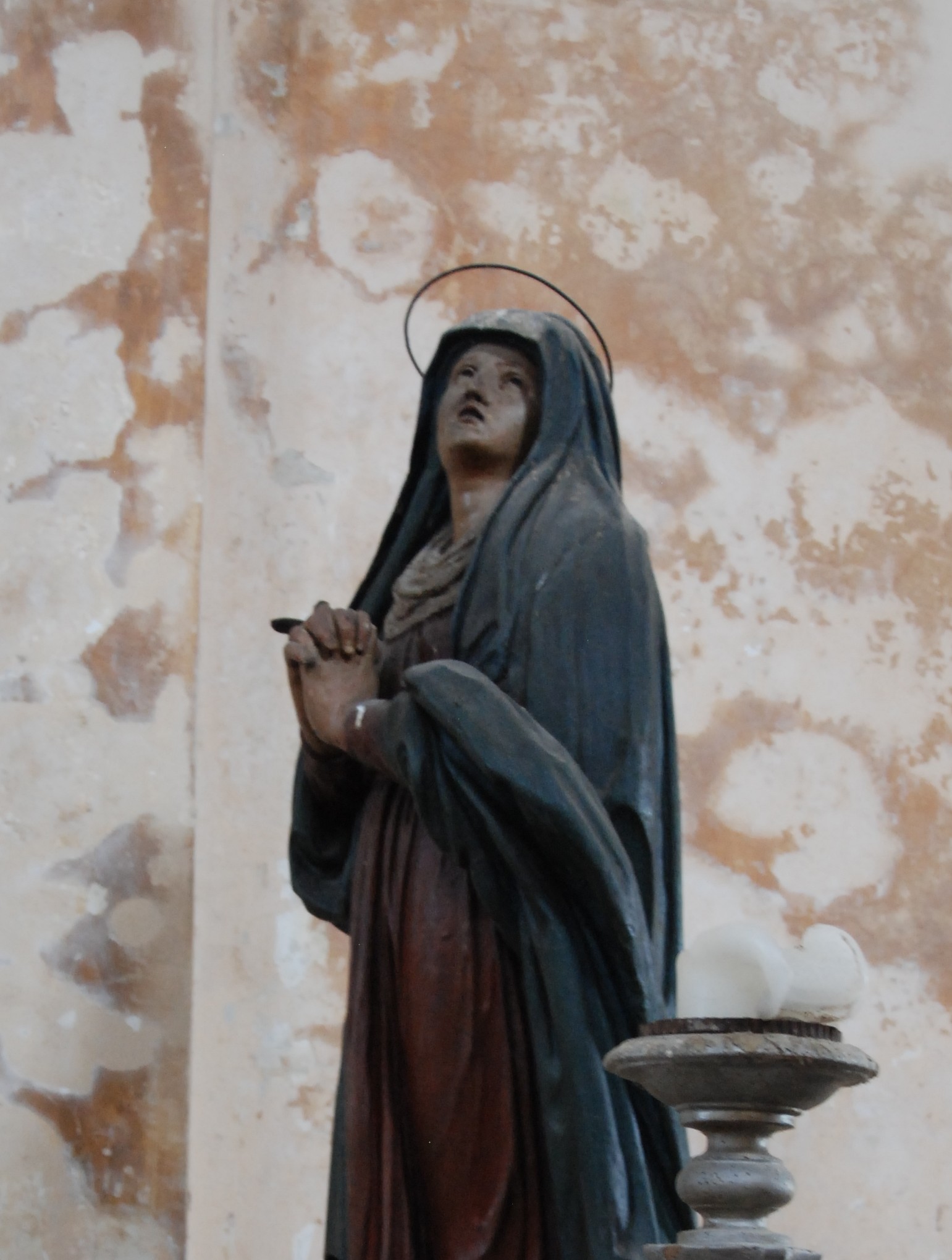 - NOTIZIE STORICO CRITICHE Il gruppo di sculture composto da Gesù Cristo crocifisso, dal San Giovanni Evangelista e dalla Madonna addolorata è posto a decorazione dell'altare maggiore ed è riconducibile agli anni in cui fu realizzato l'arredo marmoreo (1752-1759). A causa della collocazione elevata non è stato possibile verificare direttamente il materiale delle sculture, tuttavia ad un esame visivo sembrano essere modellate in cartapesta
