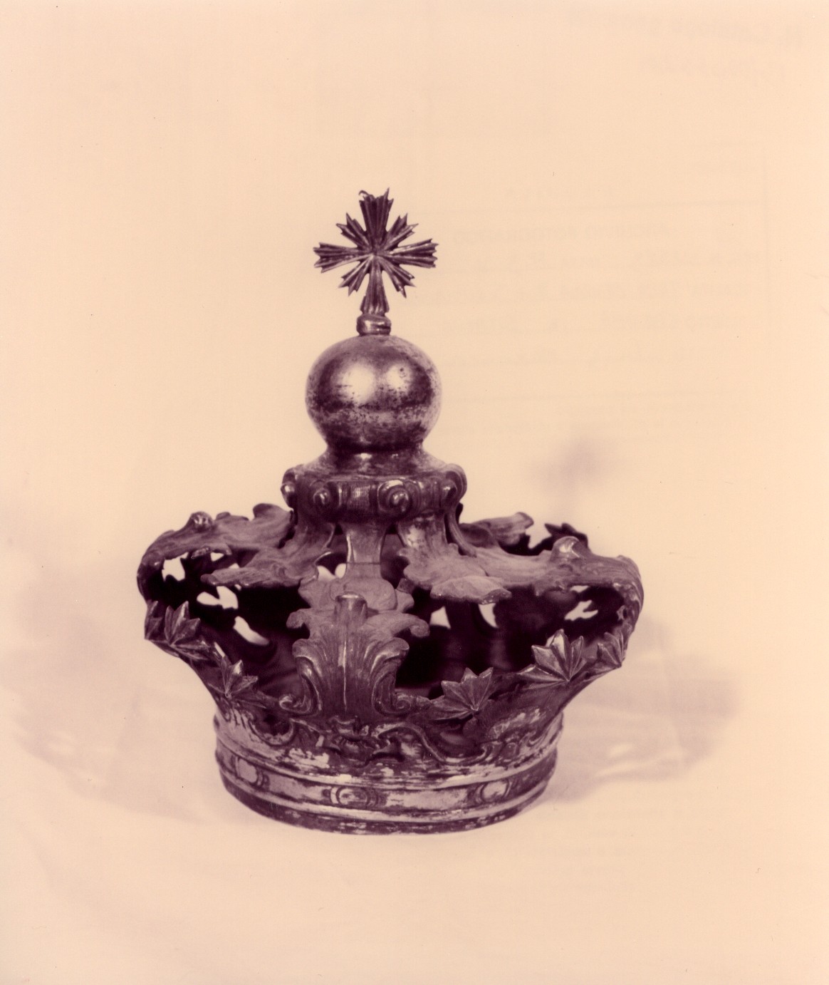 La corona è composta da cerchio ornato a fusarola sul quale poggia il fastigio, a volute e stelle, terminante nel raccordo centrale dal quale emerge il globo dorato con la crocetta apicale raggiata