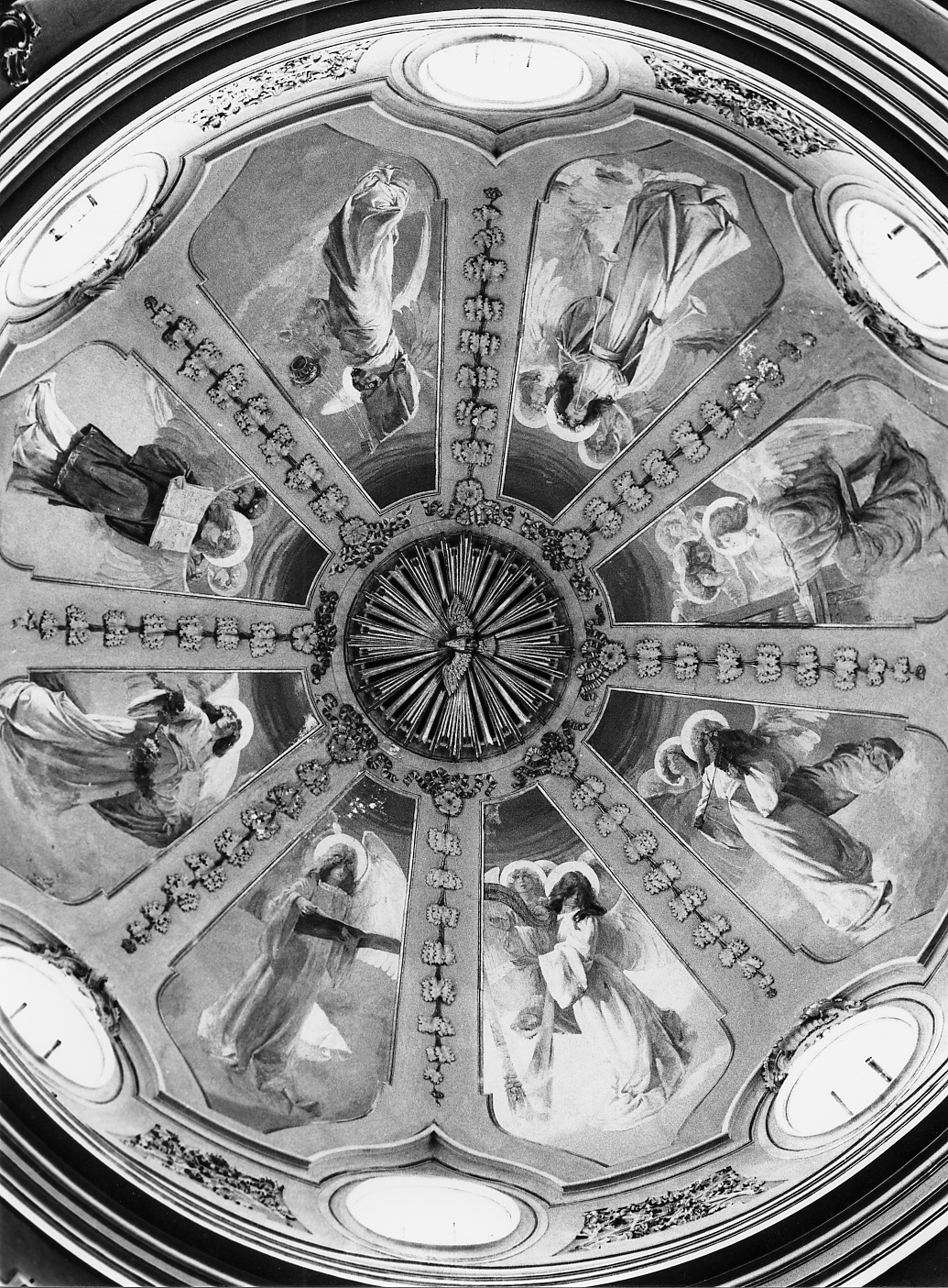 - NOTIZIE STORICO CRITICHE Discreto esempio di decorazione pittorica. L'autore, Amedeo Tedeschi, al quale appartengono quasi tutti i dipinti murali della Cattedrale, fu allievo di Domenico Morelli e successivamente di Antonio Mancini e Teofilo Patini, con il quale collaborò nell'esecuzione di varie opere in chiese della zona, fra cui quella della Madonna della Libera a Pratola Peligna. Il suo stile è riconoscibile dalla predominanza di tinte chiare, dal tono etereo e da un morbido calligrafismo
