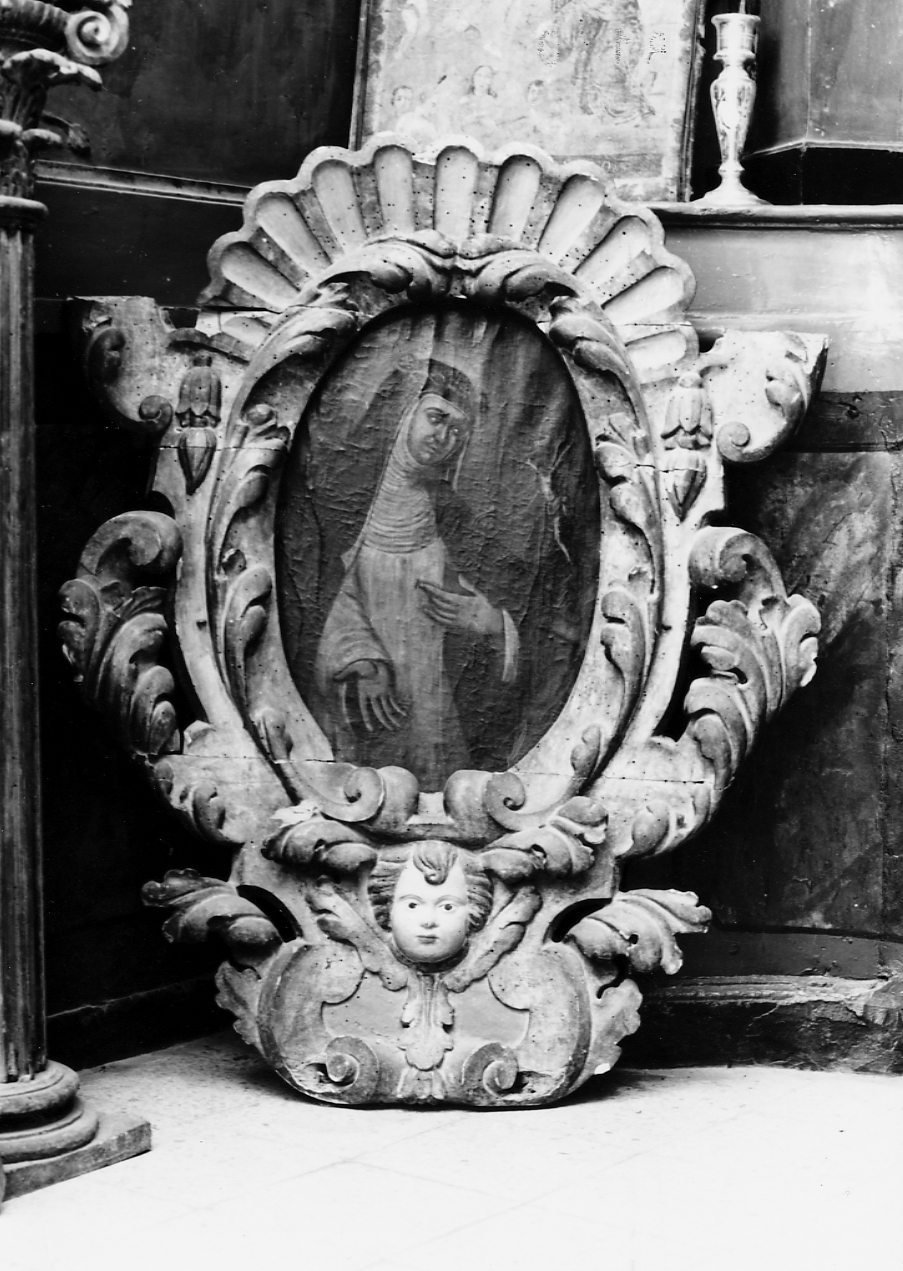 Motivi decorativi vegetali con conchiglia, volute e cherubino