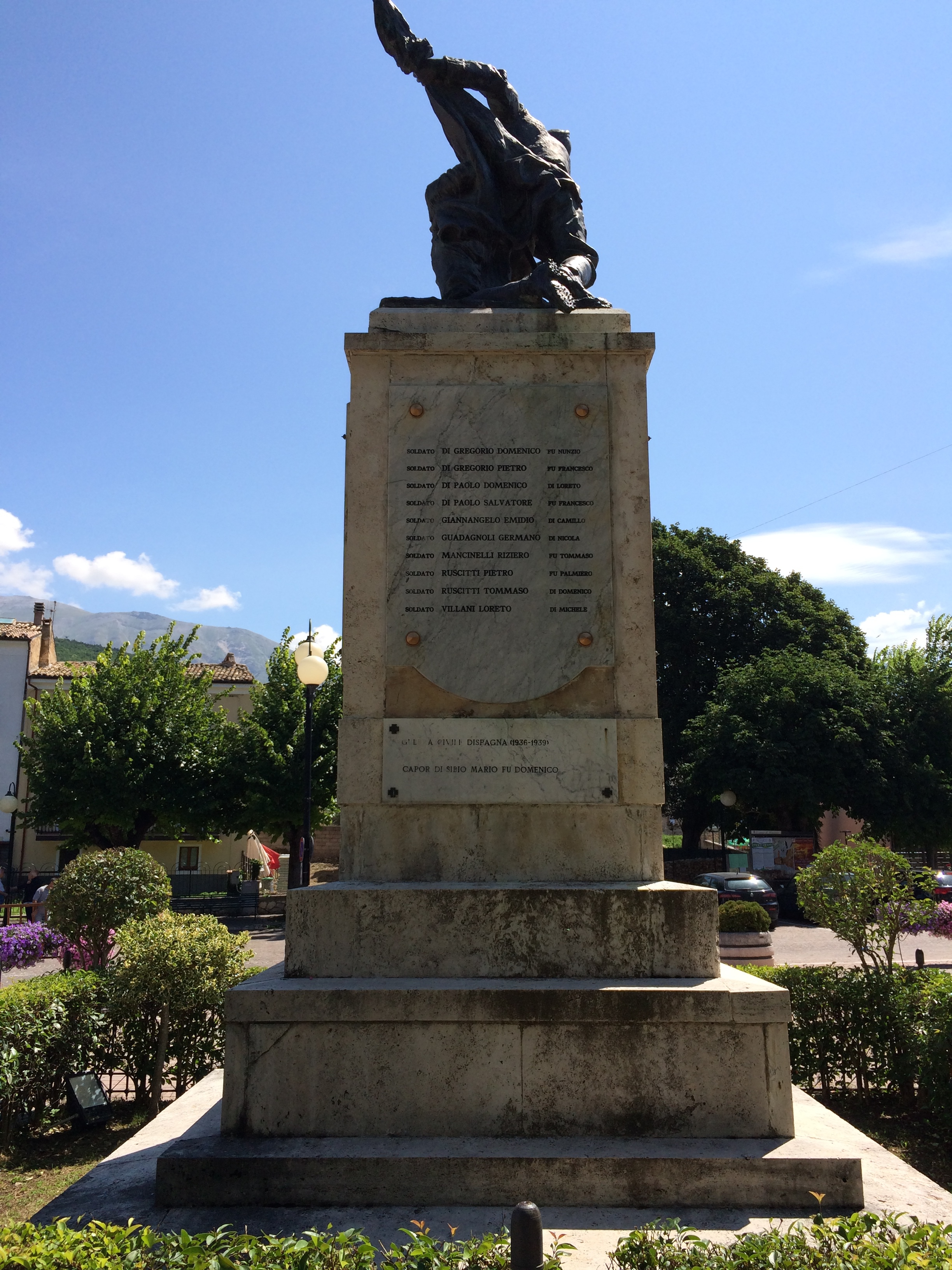 - ISCRIZIONI lastra di marmo su basamento recto in alto - SERGENTE: DI PAOLO LORENZO; DI PAOLO ROCCO; CAPORALE: DI BARTOLOMEIS ROCCO; DI GIALLONARDO ASCENZO; SOLDATO: DE ANGELIS ROCCO; DE SANTIS DOMENICO; DI CAMILLO GIUSEPPE; DI DOMENICO FRANCESCO; DI GIACOMO ANTONIO; DI GIACOMO ROCCO - maiuscolo -