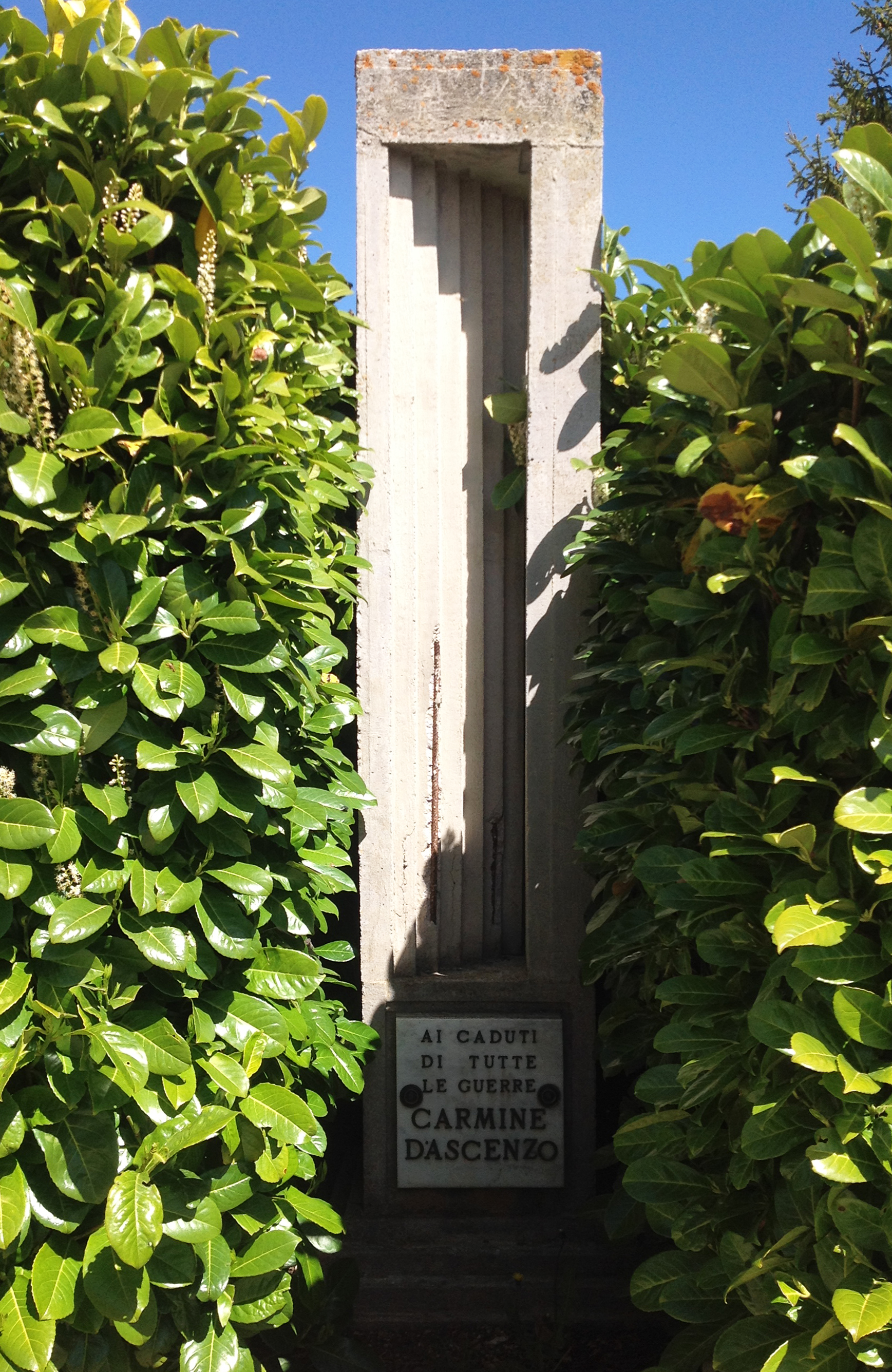 - ISCRIZIONI Sulla parte bassa del monumento - AI CADUTI DI TUTTE LE GUERRE/ CARMINE D'ASCENZO - corsivo maiuscolo -
