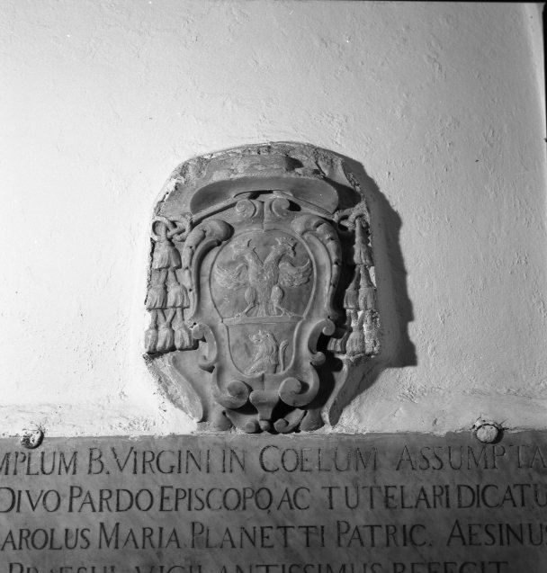 - NOTIZIE STORICO CRITICHE Lo stemma rappresentato appartiene a Carlo Maria Pianetti, Vescovo di Larino dal 1706 al 1725 che ricopre il ruolo di importante ristrutturatore della cattedrale. Eseguita da un ignoto lapicida con eleganzae coerenza compositiva e databile tra il primo ed il secondo decennio del sec. XVIII