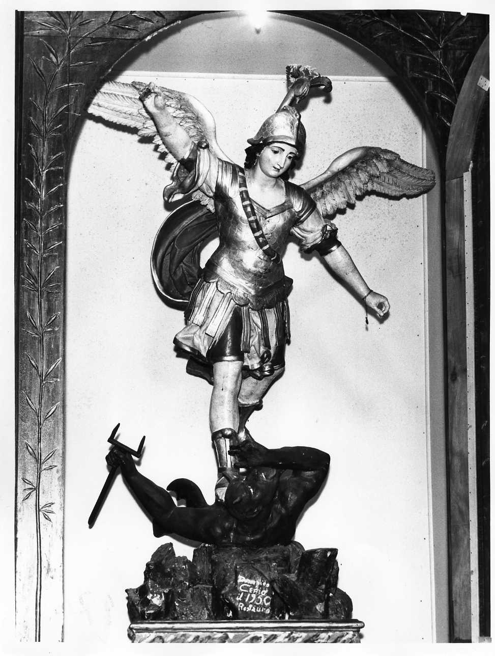 Personaggi: San Michele Arcangelo. Abbigliamento: elmo; corazza. Figure: demonio