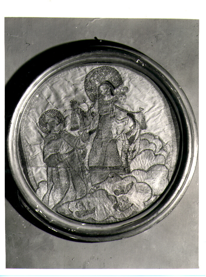 - NOTIZIE STORICO CRITICHE Questo medaglione fa coppia con quello della parete sinistra, dal quale si differenzia per una migliore fattura rivelata dalla parte pittorica della composizione. Quello della parte di sinistra è, invece, caratterizzato da una maggiore attenzione per la fattura del ricamo, che si mostra alquanto accurata. Riferibili ad un artefice locale della fine del sec. XVIII