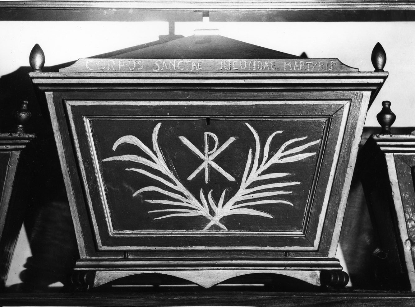 - NOTIZIE STORICO CRITICHE Le urne contenenti le reliquie dei santi martiri Vittorino, Gioconda e Clementina sono più modeste di quella di S. Teodoro: due di esse recano la data del 1832 (cfr. scheda con NCTN 5608)