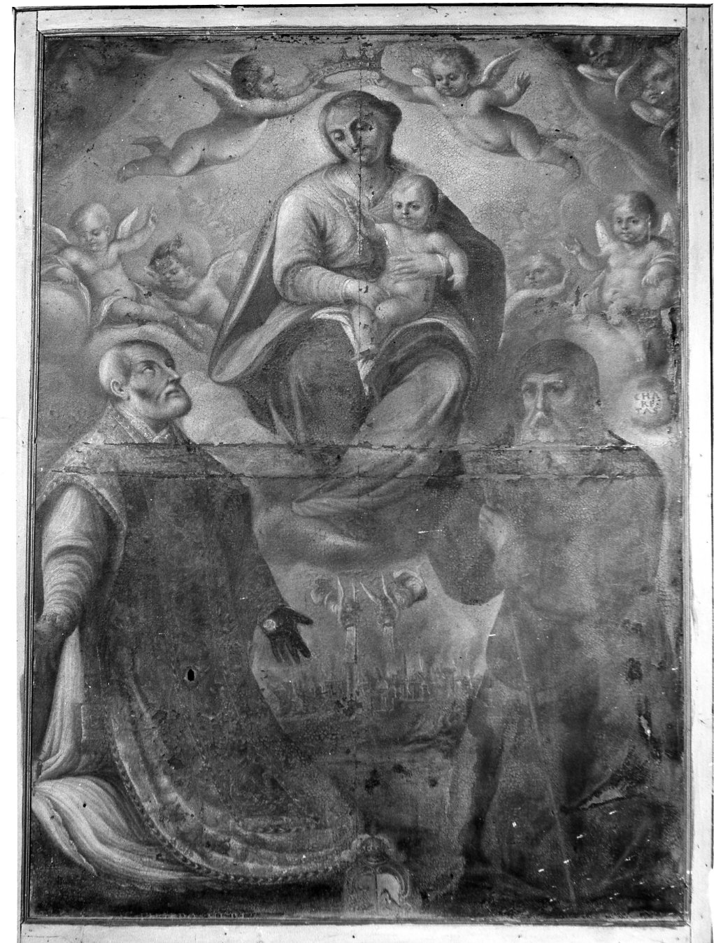 - NOTIZIE STORICO CRITICHE Il dipinto risulta firmato dal Brunetti, artista oratinese presente con numerose opere nella regione ed anche nella stessa chiesa (cfr. schede con NCTN 14/00008158 e 14/00008186). La datazione riferita dal Pierro al 1690 può essere confermata sulla base di riscontri stilistici con altre opere coeve di Brunetti. Dal punto di vista iconografico il dipinto riprende un soggetto pittosto diffuso in ambito molisano: il miracoloso intervento della Vergine nello spengimento di un incendio che aveva minacciato Costantinopoli. Un'iscizione eleminata nei recenti restauri ricordava un antico intervento di restauro del 1854