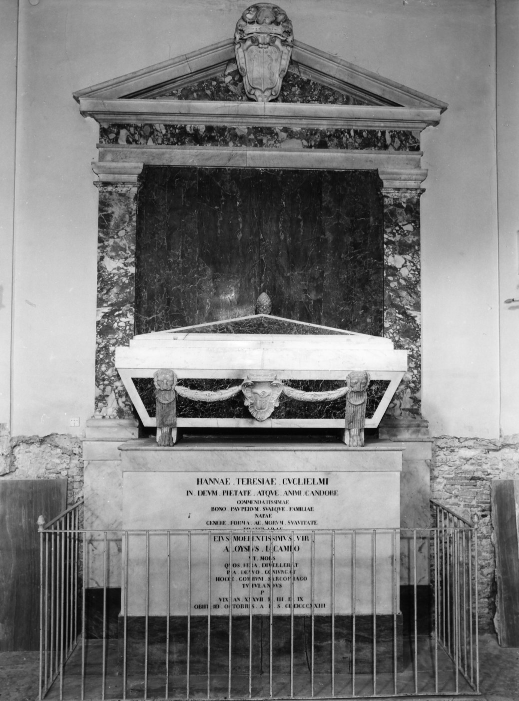 - ISCRIZIONI sulla lapide - HANNAE TERESIAE GVGLIELMI/ IN DEVM PIETATE ATQUE ANIMI CANDORE/ COMMENDATISSIMAE/ BONO PAVPERUM SVAEQUE FAMILIAE/ NATAE/ CENERE FORMA AC MORVM SVAVITATE/ PRAECLARE/ EIVS MOERENTISSIMVS VIR/ ALOYSIVS IACAMPO/ VT MORS/ QVOS FERA DIVELERAT/ PIA DENVO CONIVNGAT/ HOCCE COMMVNI SARCOPHAGO/ TVMVLANDVS/ P/ VIX AN. XXXVII M. III D. IX/ OBIIT ID OCTOBRIS A.R.S. CIOIOCCCXXIII - lettere capitali - a incisione -