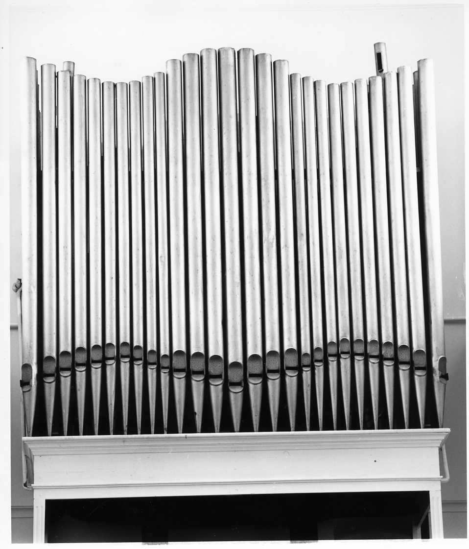 Prospetto piatto, ad unica campata con vanne di facciata di lega scadente, bocche allineate e labbro superiore a mitria