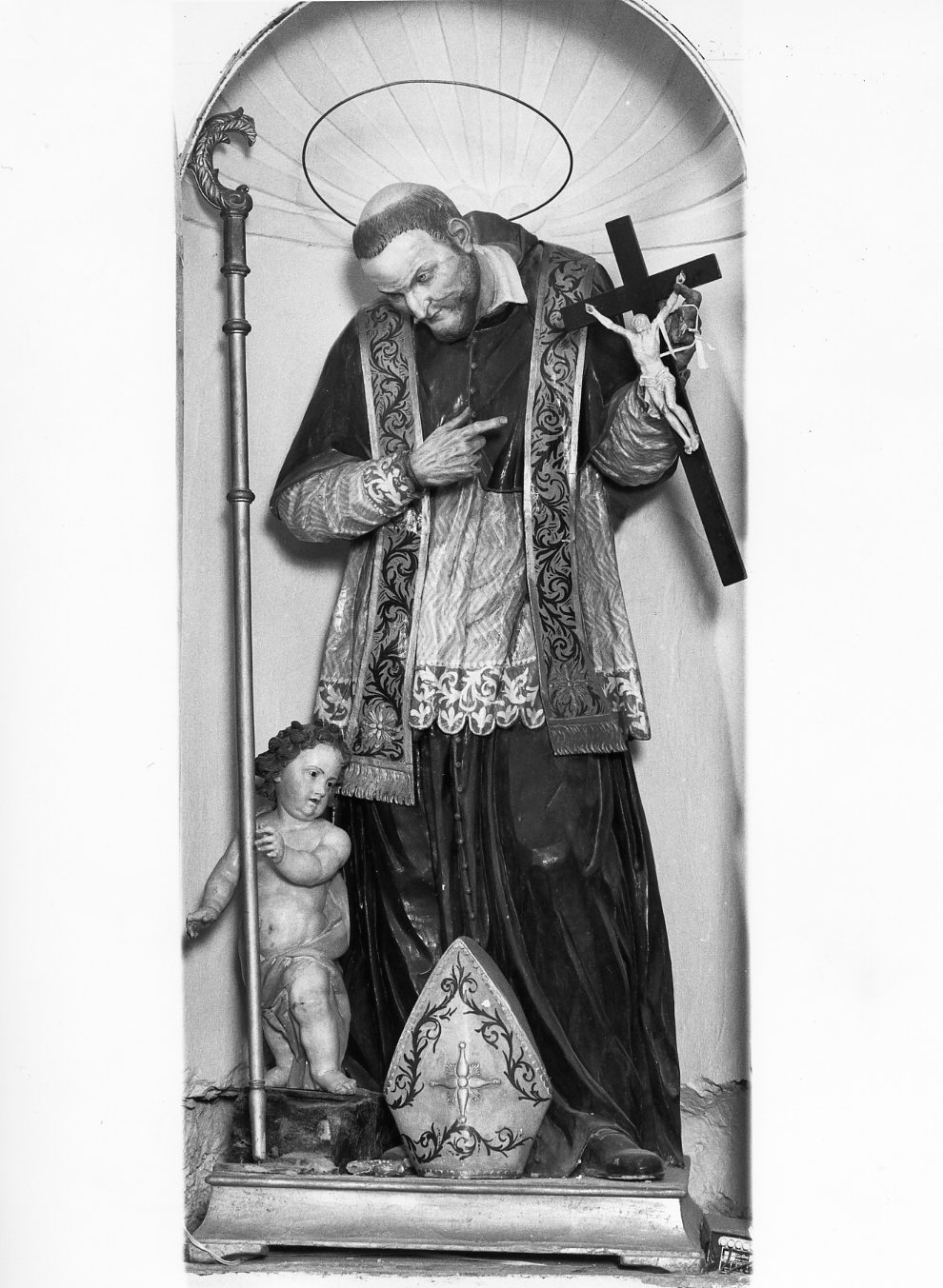 Personaggi: Sant'Alfonso Maria de' Liguori; Bambino. Abbigliamento religioso: (Sant'Alfonso Maria de' Liguori) abbigliameto vescovile. Oggetti: crocifisso