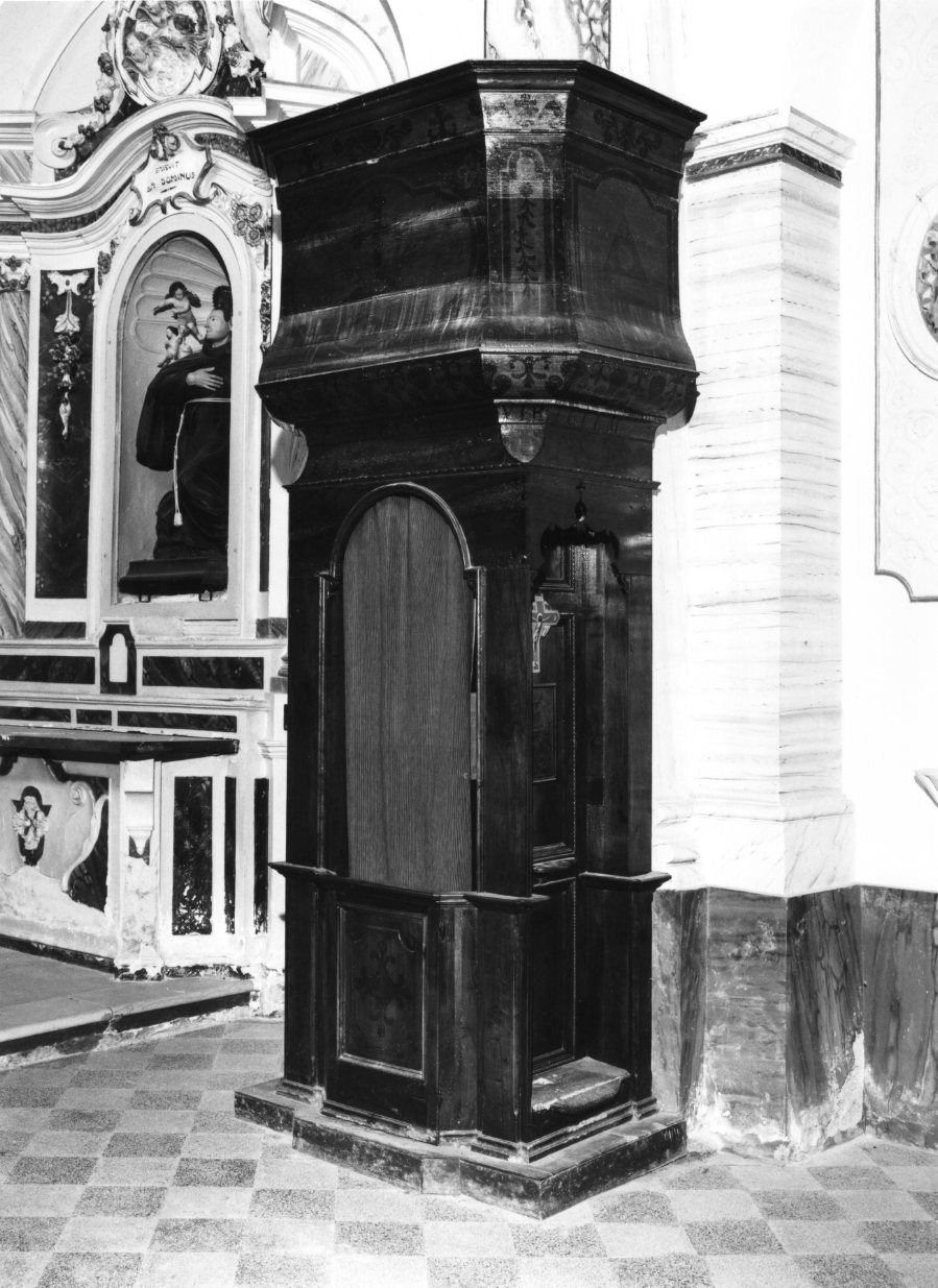 - STEMMI lastra centrale del pulpito - religioso - Emblema - Minori Osservanti - Entro cornice mistilinea/ due braccia incrociate davanti a croce dalle estremità trilobate
