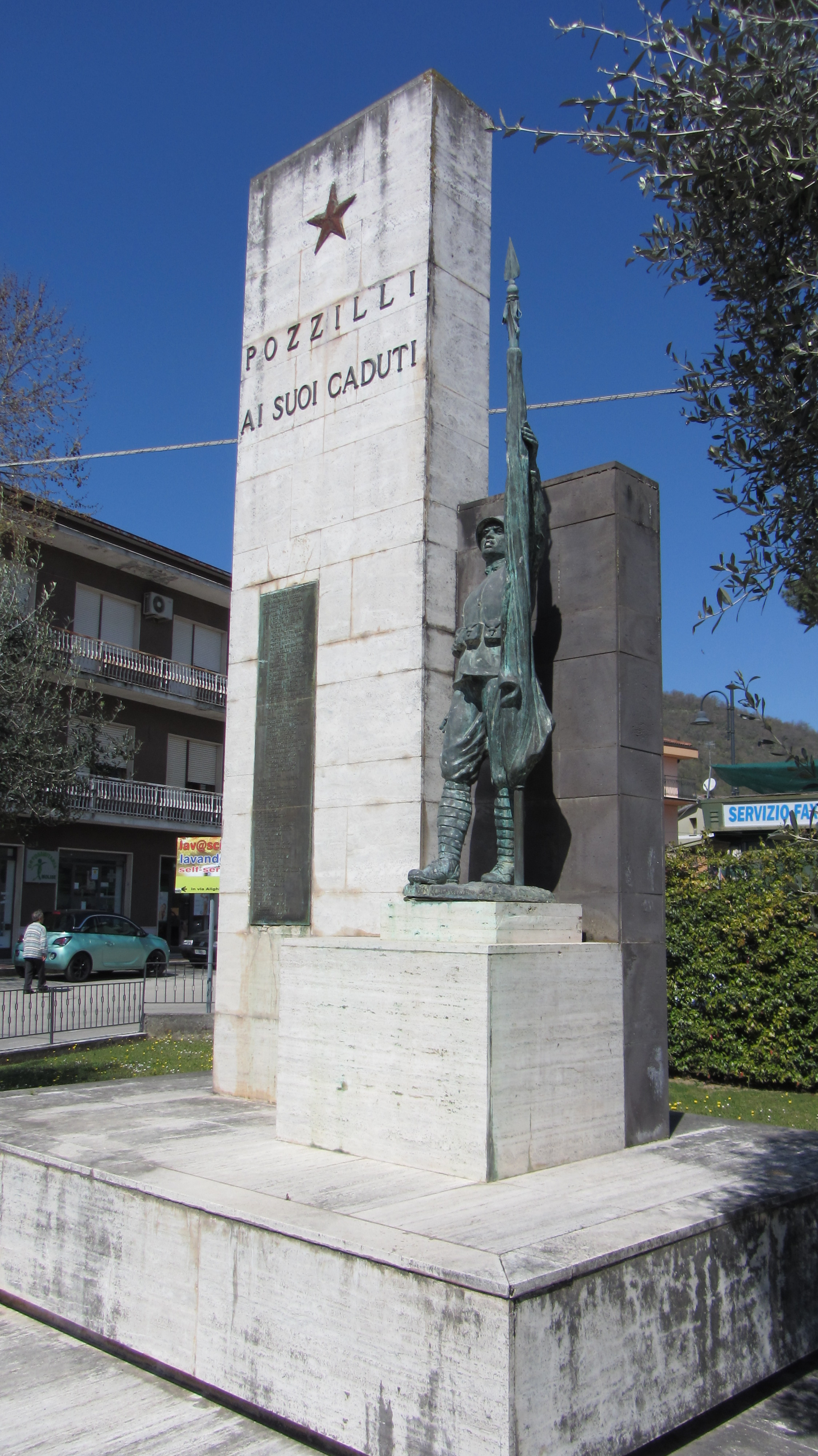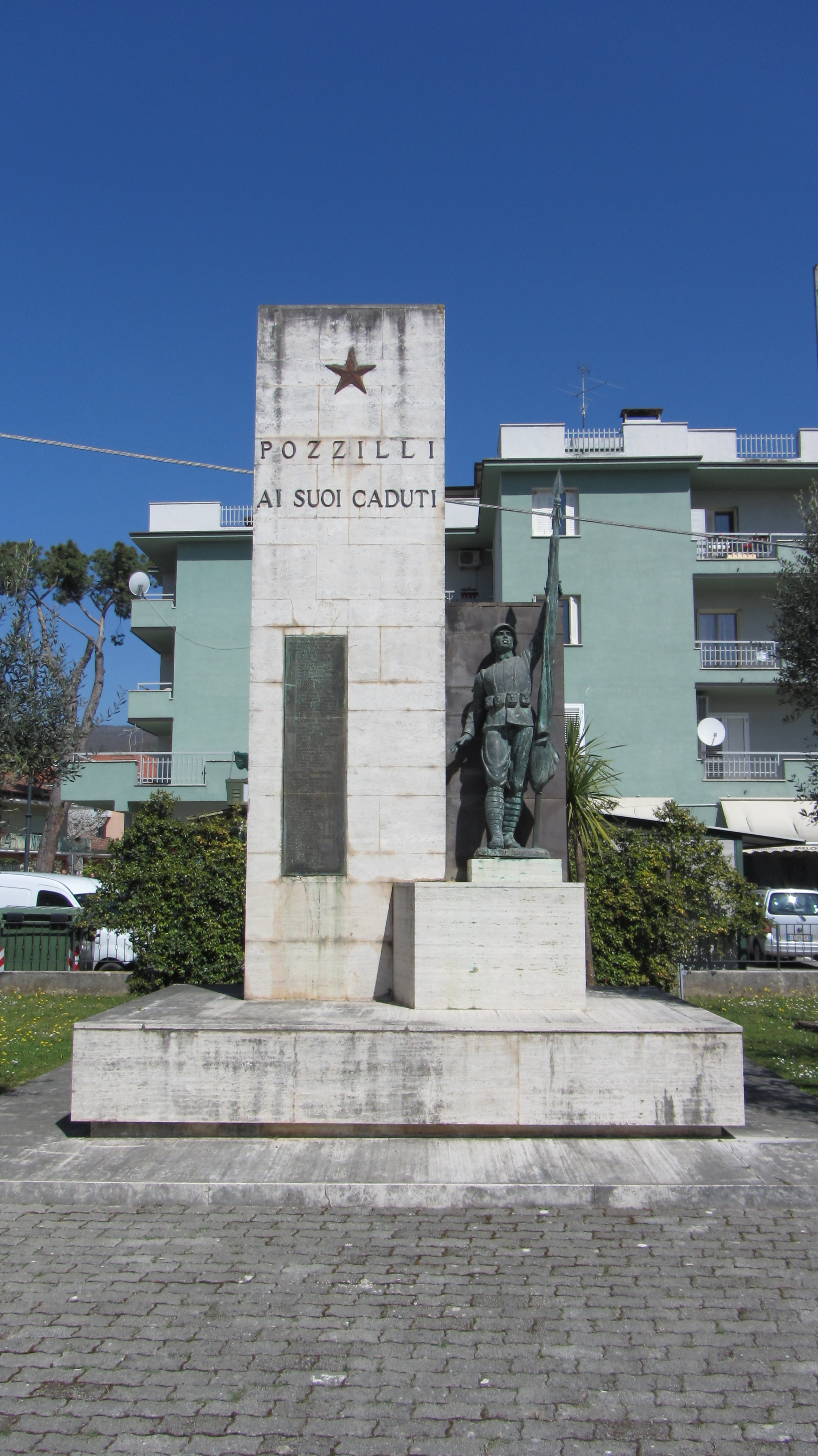 - ISCRIZIONI centrale - POZZILLI/ AI SUOI CADUTI - capitale - a caratteri applicati in bronzo - italiano