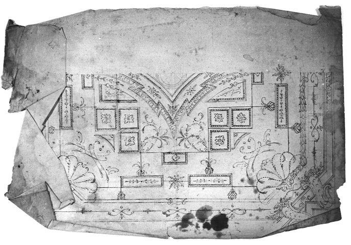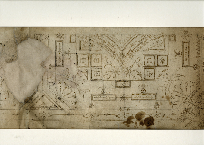 - NOTIZIE STORICO CRITICHE La raccolta, miscellanea di disegni, acquerelli, bozzetti, stampe etc. di vari artisti attivi nei secc.XVII e XVIII , fu recuperata nel 1983 presso le famiglie Iannadrea e Tirabassi, eredi dei Giuliani, Giacomo, padre, e Nicola, figlio, pittori e decoratori di Oratino (CB) operativi in ambito napoletano a cavallo dei secc. XIX-XX. Nicola, allievo di Morelli, la acquisì dagli eredi di Ciriaco Brunetti, pittore e decoratore oratinese attivo in tutto il Molise dalla prima metà del sec. XVIII agli inizi del XIX. Nel 1990 è stata acquistata dal MIBAC e custodita dalla locale Soprintendenza (specifiche dell’atto del 29/10/1990: 375 disegni su fogli singoli; un taccuino di 27 fogli, un taccuino di 21 fogli, un taccuino di 141 fogli, un volume rilegato contenente 54 fogli, 129 incisioni e 24 bozzetti ad olio su tela o cartone). Considerato che su un foglio sono stati realizzati più disegni-bozzetti-schizzi, il fondo è costituito da 700 disegni circa, di cui oltre la metà acquerellati, e da circa 330 stampe, italiane e tedesche, dei secc. XVI-XVIII. La collezione è composta da: disegni raccolti in n. 4 taccuini di Ciriaco Brunetti o Beniamino Brunetti, di varie dimensioni (n. 1 con figure di Santi e n. 3 con progetti per decorazioni); un album rilegato in pelle nel quale sono stati originariamente incollati circa 200 disegni di mani diverse (riportati a singoli foglio dopo il restauro). Vi sono inoltre: circa n. 200 studi per decorazioni in larga parte siglati o firmati da Ciriaco Brunetti; un gruppo di circa n. 70 accademie di nudo riconducibili alla bottega di Francesco Solimena; un gruppo di circa n. 30 disegni a soggetto sacro di Niccolò Falocco, pittore oratinese zio di Brunetti, allievo di Solimena, operativo a Napoli; n. 40 fogli di autori vari di ambito napoletano dei secc. XVI-XVIII (Balducci, Corenzio, Giaquinto etc.). L’importanza del fondo è data dalla sua unitarietà trattandosi di materiale di uso quotidiano, giunto quasi integro fino a noi, di un pittore gravitante in ambito provinciale, la cui produzione superstite è purtroppo oggi riconducibile solo ad una serie di dipinti, conservati in chiese molisane. Testimonia, inoltre, non solo la quotidiana, costante attività del Brunetti nell’ambito dei soggetti decorativi, ma anche l’operosa attività di una bottega oratinese in cui praticavano più esponenti dello stesso ambito familiare (Pietro, Beniamino, Benedetto e Stanislao Brunetti). Le opere, restaurate per oltre il 50% in tre fasi, dal 1992 al 1995 dai restauratori C. L. B. Borruso e P. Crisostomi, sono state custodite presso i depositi della Soprintendenza fino al 2015 anno di definitiva collocazione presso Castello Pandone di Venafro, dove, a rotazione, fanno parte dell’esposizione permanente del Museo. Il disegno sul recto rappresenta molto probabilmente una delle Storie di Mosè, in particolare quella relativa all'acqua sgorgante dalla roccia per dissetare il popolo d'Israele. Il disegno sul retro mostra una trama decorativa per soffitto che risente del gusto neoclassico, elegante e lineare di fine secolo. In entrambi i casi si riconosce la qualità del disegno e l'esperienza nel tratteggio e nella resa formale di figure ed elementi decorativi