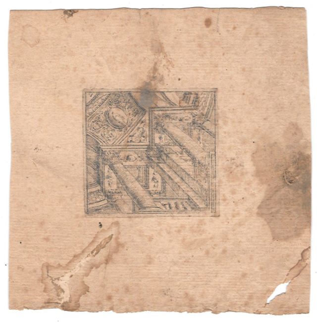 Foglio quadrato è disegnato sul recto nella parte centrale a matita. Il disegno è inscritto in un quadrato