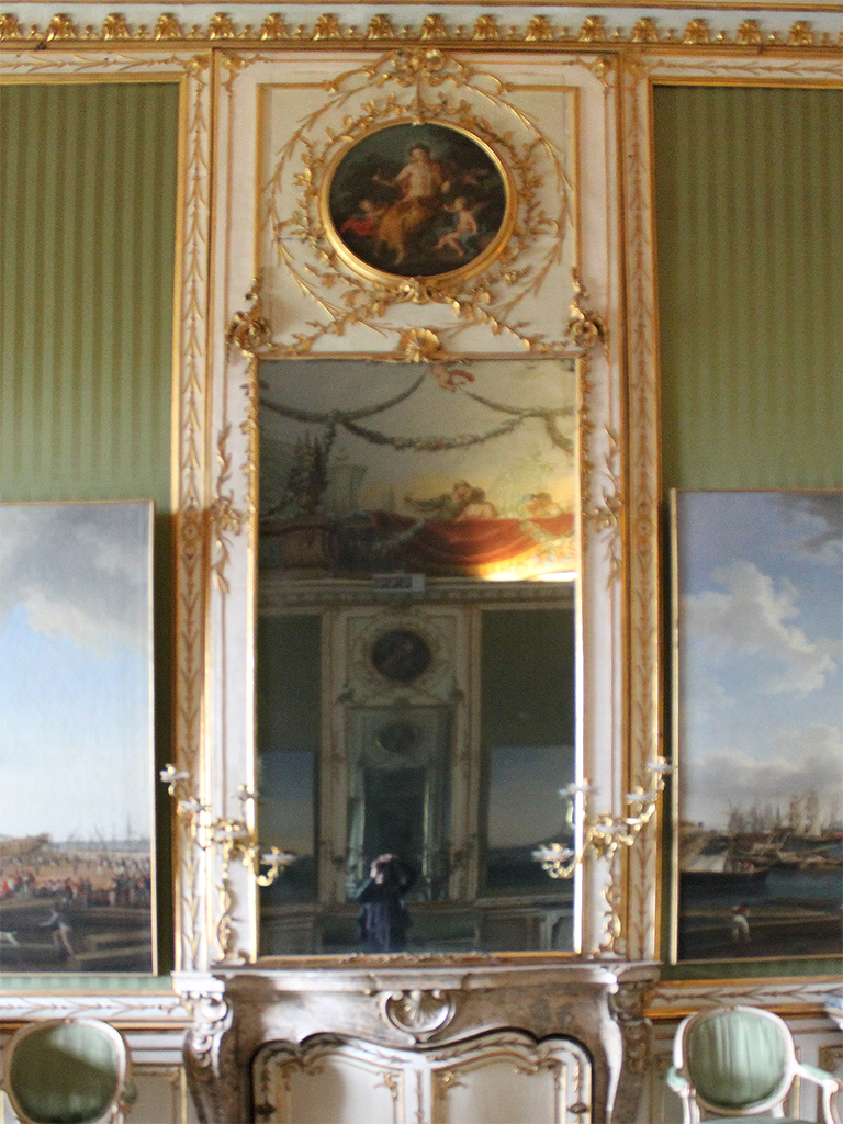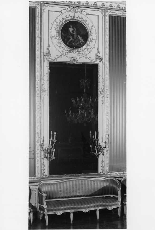 - NOTIZIE STORICO CRITICHE In linea con l'arredo delle precedenti sale del Settecento, la specchiera evidenzia l'estro degli artigiani reali che realizzano eleganti manufatti sotto la supervisione di Gennaro Fiore e di Bartolomeo di Natale (documentato a Caserta negli anni ottanta del XVIII sec.)