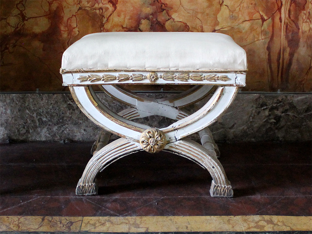 - NOTIZIE STORICO CRITICHE La seduta evidenzia stilemi Neoclassici che verranno riproposti, con varianti cromatitiche, dagli artigiani reali attivi nella prima metà dell'Ottocento