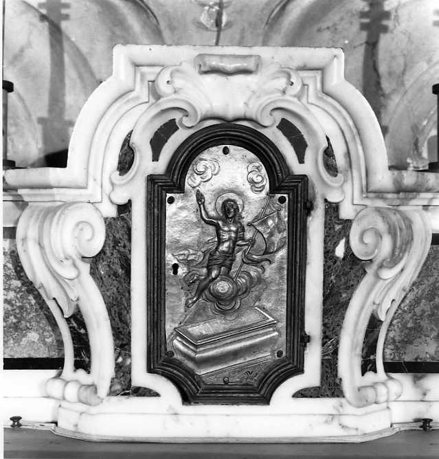 sportello di tabernacolo raffigurante Cristo risorto sulle nubi nell'atto di stringere un vessillo nella mano sinistra