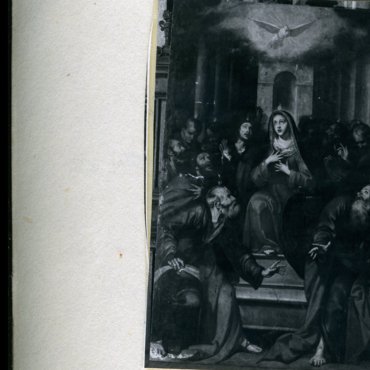 - NOTIZIE STORICO CRITICHE Malgrado nella medesima chiesa si trovi un altro dipinto del Marullo, tra queli che riscossero maggior succeso di critica, di questa Pentecoste non ci sono grosse testimonianze oltre alle guide, che ne confermano la presenza in questa sede già da antica data. L'opera è firmata ma non datata, appare piuttosto rigida nella composizione e, complessivamente, meno articolata della S. Anna che, pure, venne dipinta in età giovanile. L'espressività dei volti, che si nota chiaramente nell'altro dipinto, qui si stempera in tratti convenzionali ed in forzature di tipo accademico che non rendono assolutamente giustizia ad un pittore che riesce, altrove, a svincolarsi dai rigidi dettami di scuola