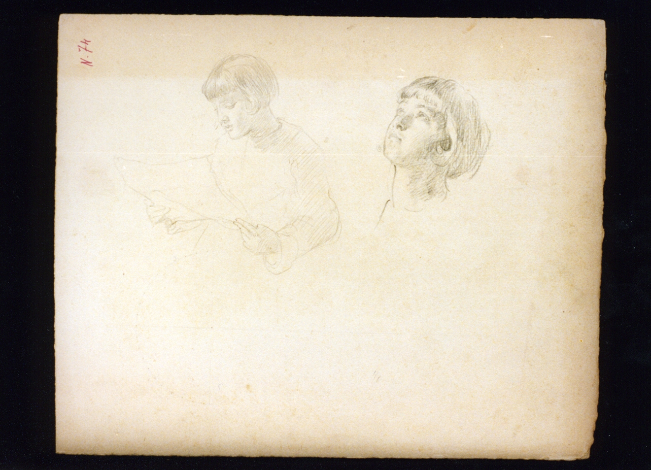 Studio di fanciulla leggente e testa della stessa