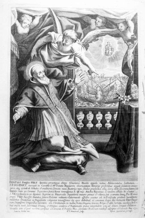 - ISCRIZIONI al centro - BEATO PIO V PONTEFICE - lettere capitali -