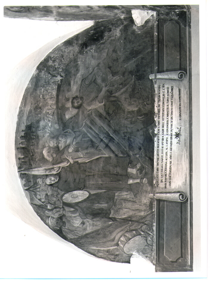 • ISCRIZIONI in basso, cartiglio - SQUILLATE CARE TROMBE, USCITE IN CAMPO / UN CATTOLICO MARTE, ECCO SI AMMIA / ERGE... -