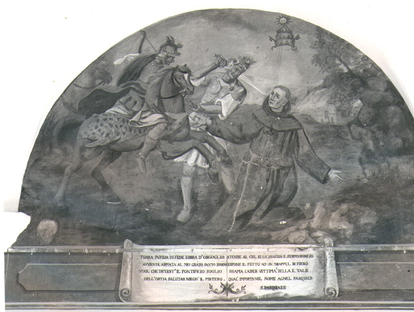 - ISCRIZIONI in basso, al centro - TURBA INFIDA DI FEDE, EBBRA D'ORGOGLIO / AVVENTA ARMATA AL MIO GRATO SANT.. -