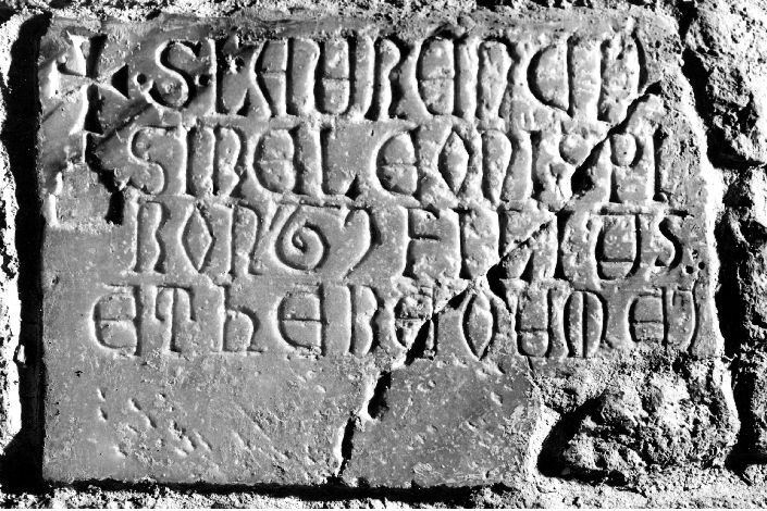 - ISCRIZIONI all'esterno della parete sinistra - S (EPULCRUM) LAURENTII SIBE LEONIS PIRONTIUS FILIUS ET HEREDUM EIUS - lettere capitali - a solchi - latino