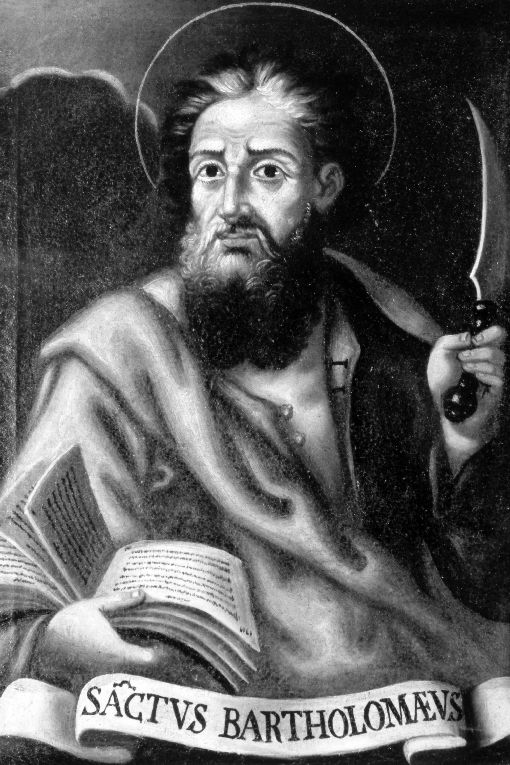 - ISCRIZIONI cartiglio - SA'CTVS BARTHOLOMAEVS - lettere capitali - a pennello - latino