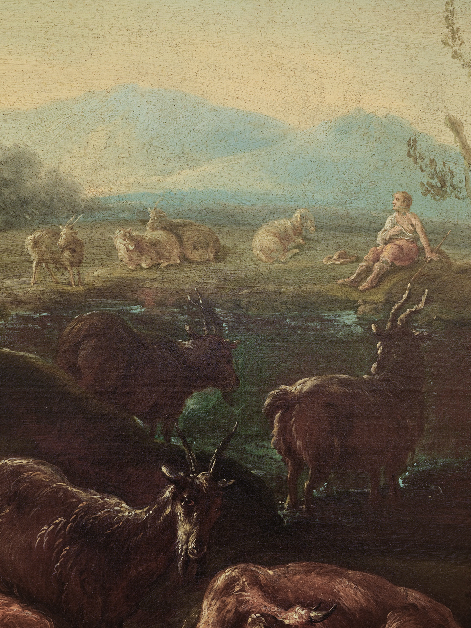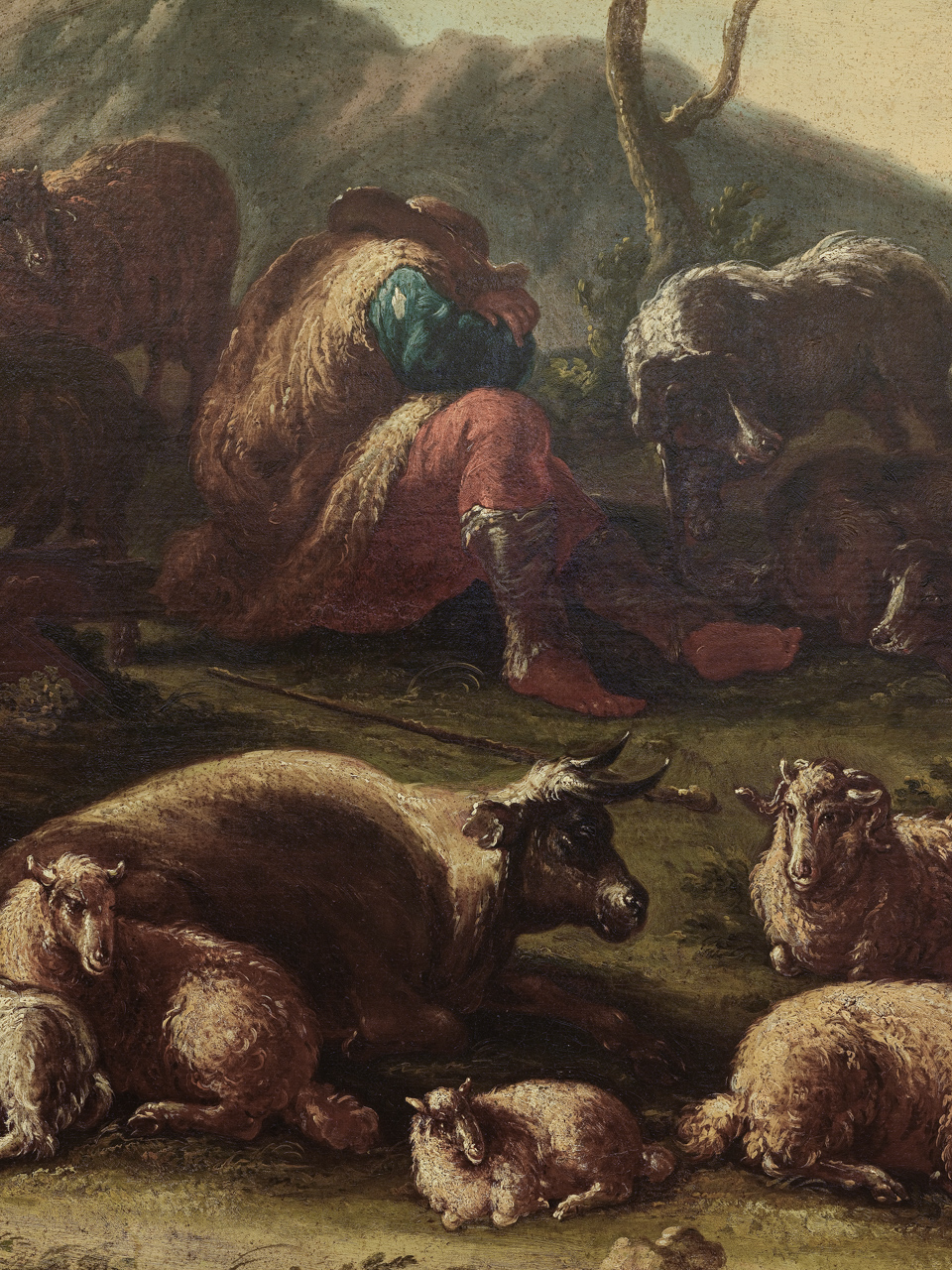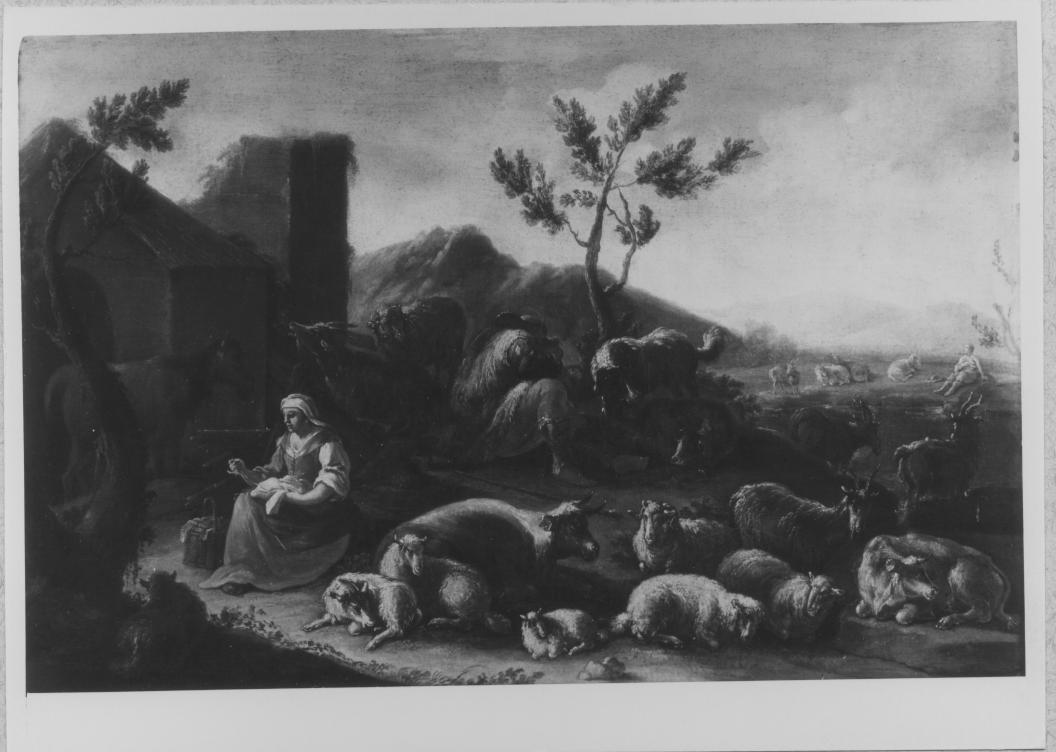 Paesaggio con armenti in riposo. Paesaggio con pastori e armenti in riposo
