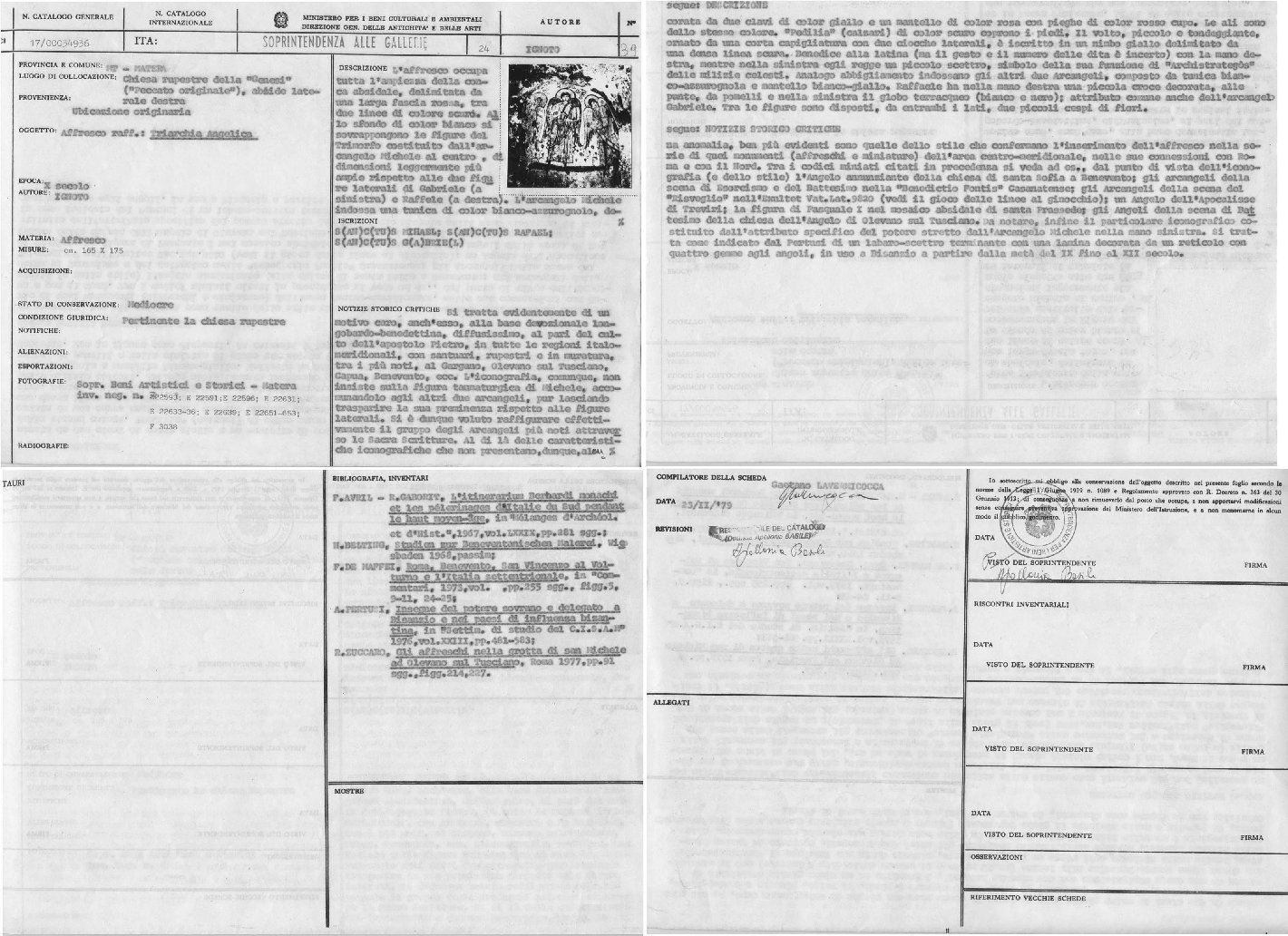 - NOTIZIE STORICO CRITICHE Si tratta evidentemente di un motivo caro, anch'esso, alla basedevozionale longobardo-benedettina, diffusissimo, al pari del cultodell'apostolo Pietro, in tutte le regioni italo-meridionali, consantuari, rupestri e in muratura, tra i più noti, al Gargano, Olevano sulTusciano, Capua, Benevento, etc. Continua in FTAN 34936